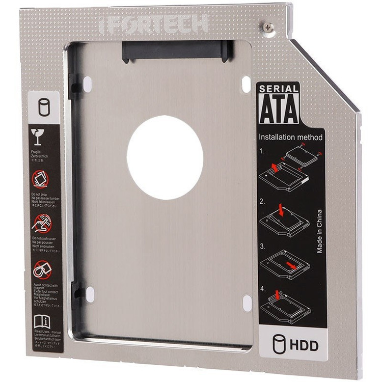 مشخصات کالا: ابعاد ۱۲×۱۳۰×۱۳۰ وزن ۸۰ گرم مشخصات فنی رابط SATA۳.۰ قابلیت استفاده در حافظههای SSD و هارددیسکهای ۷ / ۹.۵ / ۱۲.۵ میلی متری ۲.۵ اینچی پشتیبانی از لپتاپهای دارای درایونوری ۹.۵ میلیمتری جنس بدنه آلومینیومی