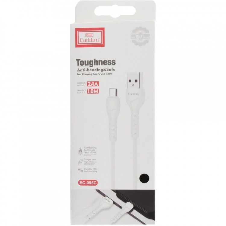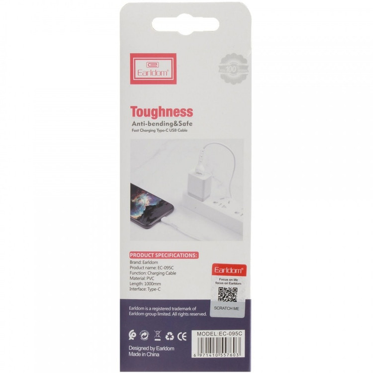 کابل شارژ Type-C مدل Earldom EC-095C با طول 1 متر از نوع فست بوده و به دلیل طراحی زیبا و کیفیت عالی در ساخت این کابل مقاومت بالا در برابر خمیدگی، کشیدگی با انعطاف پذیری بالا ساخته شده از با دوام ترین مواد هرگز پاره نمیشود و قابلیت شکنندگی بیشتر دارد. این سیم شارژ تایپ سی مناسب برای انواع گوشی و دستگاه های با پورت USB-C که برخلاف نسخه های قبلی USB میتواند به هر دو طرف درگاه گوشی متصل کرد و دیگر نیازی به چرخاندن و تعویض جهت آن نیست .
