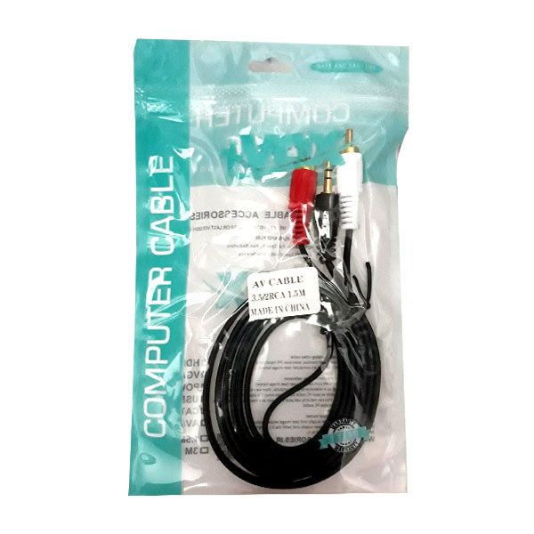 این کابل بصورت یک فیش جک 3.5 میلیمتری به 2 سوکت RCA می باشد و سر تکی آن یک فیش سوزنی AUX که به خروجی هدفون، لپتاپ و کامپیوتر و یا موبایل و دو سر دیگر آن که RCA نام دارد، به انواع اسپیکر و پخش کننده ها یا دستگاه سینمای خانگی و … متصل میشود.