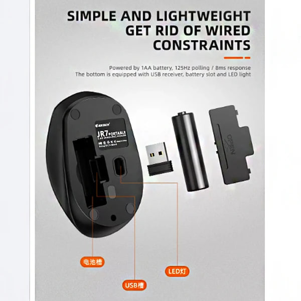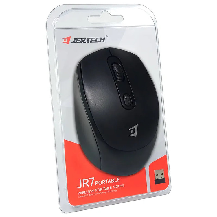 ماوس بیسیم جرتک مدل JR7 یک ماوس فوق العاده سبک، قابل حمل، مناسب برای کارهای خانگی و اداری می باشد که با یک دانگل USB به سیستم شما وصل می شود.عمر کلیدها بیش از 10 میلیون کلیک است و برد آن 10 متر می باشد. همچنین به همراه این ماوس یک عدد باطری قلم می باشد