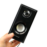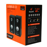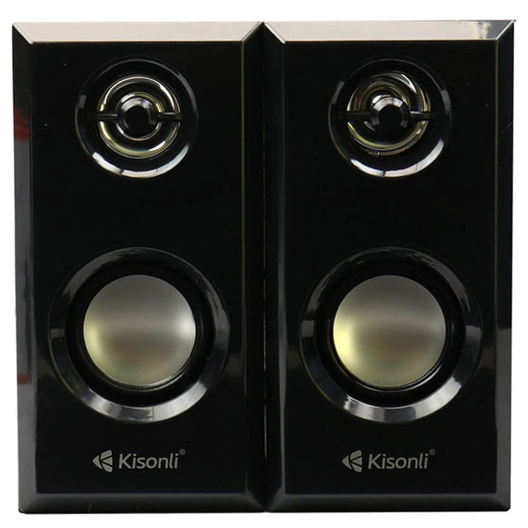 اسپیکر دو تکه لپ تاپی کیسونلی مدل T001 اسپیکر دسکتاپ Kisonli مدل T001 یک اسپیکر با طراحی دو تکه مناسب برای لپ تاپ و سیستم های خانگی جهت تماشای فیلم، سریال، گوش دادن به موسیقی و ... می باشد. این محصول از طریق رابط جک ۳٫۵ میلی متری صدا و پورت USB به کامپیوتر، لپ تاپ و دیگر دستگاه های سازگار متصل می شود. همچنین با توجه به ابعاد کوچک و جمع و جوری که دارد فضای زیادی از میز کار را اشغال نخواهد کرد و در حداقل فضا قابل راه اندازی و استفاده است. بلندگوهای اسپیکر دارای توان خروجی ۳ وات بوده که در مجموع ۶ وات خروجی را جهت پخش اصوات می می دهند. نسبت سیگنال به نویز این محصول ۶۰ دسی بل و دامنه فرکانسی آن ۹۰ هرتز تا ۲۰ هزار هرتز بوده که با توجه به مشخصات کلی و قیمت اقتصادی محصول می توان از کیفیت و وضوح صدای آن اطمینان کافی به دست آورد. اسپیکر ۲ تیکه کیسونلی T001 برای استفاده نیاز به نصب و راه اندازی خاصی نداشته و با پشتیبانی از فناوری plug and play بر روی نسخه های مختلف ویندوز قابل استفاده می باشد. بر روی بدنه این دستگاه یک کلید فیزیکی چرخشی جهت تنظیم صدا تعبیه شده که به وسیله آن می توان صدای اسپیکر را تنظیم کرد، همچنین منبع تغذیه و تامین انرژی اسپیکر از طریق رابط USB تامین شده و نیازی به اتصال جداگانه به برق نخواهد داشت. این اسپیکر از بدنه با کیفیت و مقاوم در برابر ضربه، خط و خش، فشار و ... ساخته شده که کاربر بدون نگرانی از بابت آسیب دیدن دستگاه می تواند از آن در محل کار و یا منزل جهت استفاده روزانه بهره ببرد.