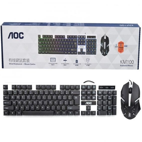 کیبورد و ماوس با سیم گیمینگ ای او سی مدل AOC KM100