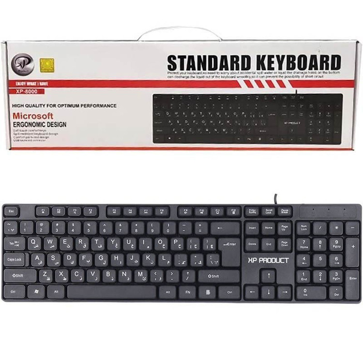 کیبورد XP-PRODUCT مدل XP-8000N یک کیبورد سیمی و اقتصادی است که برای استفادههای عمومی در محیطهای اداری، خانگی و آموزشی طراحی شده است
